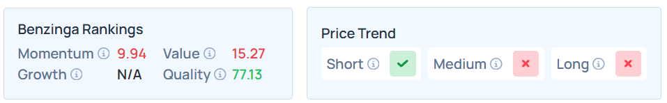 - Benzinga’s Edge Stock Rankings indicate that DELL maintains a strong price trend over the short and long terms but a weak trend in the medium term, with a moderate value score.