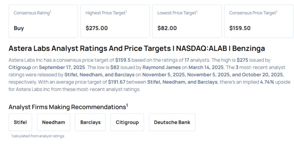 - Needham analyst N. Quinn Bolton maintained Astera Labs with a Buy and raised the price target from $205 to $220.